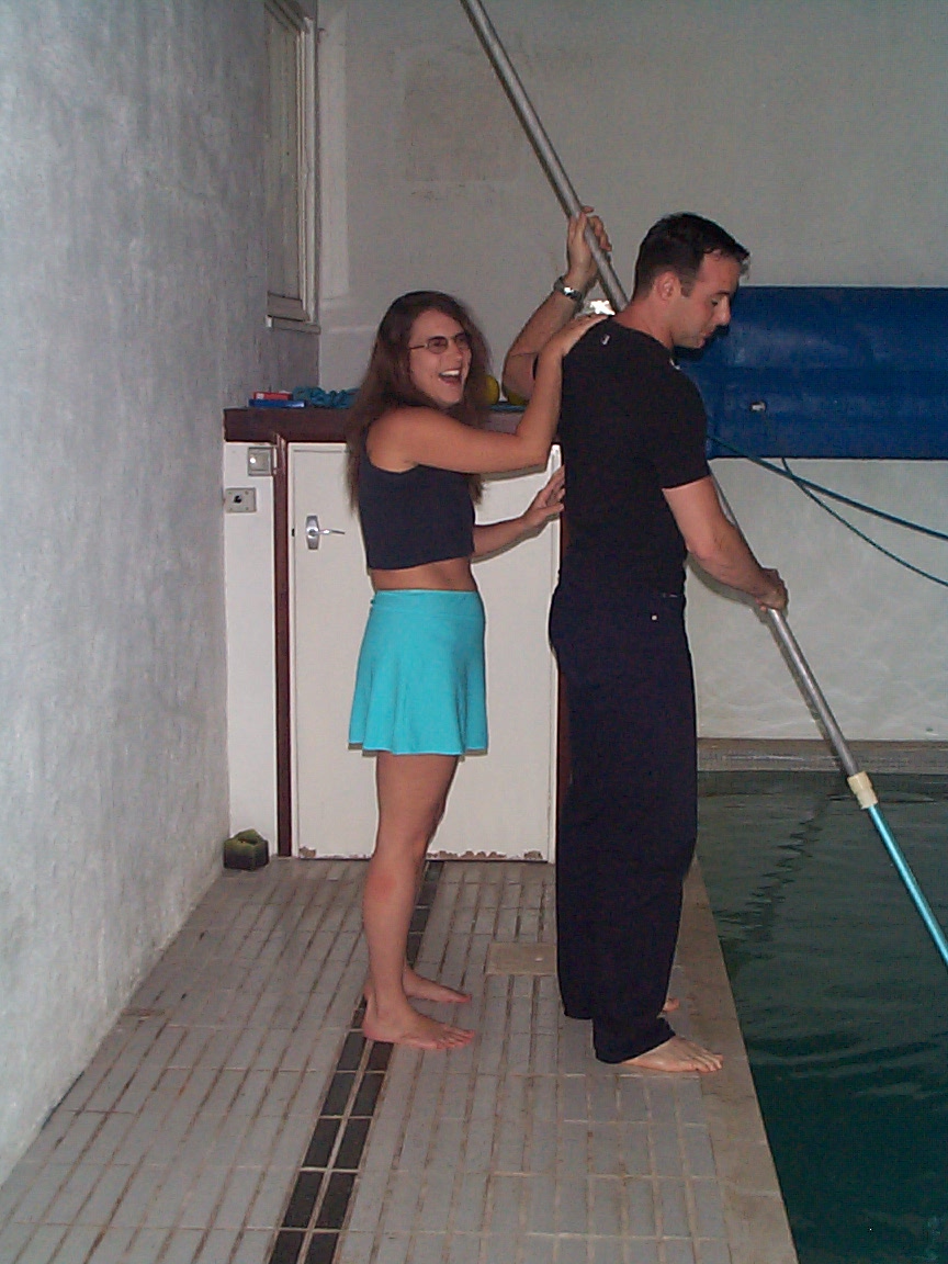 I had been watching him and liked the way he looked,so I decided to help him, lol It was not long before I was flashing him, then I moved on to undressing and groping him, it very soon led to a full on fuck session beside the pool.